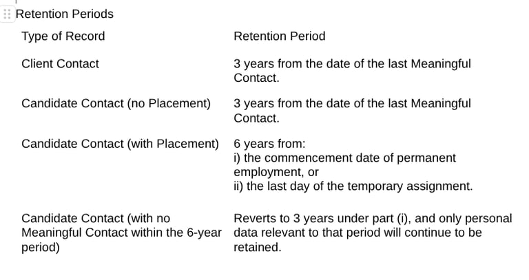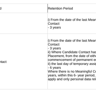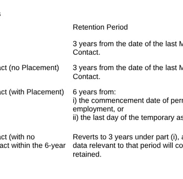 Retention Schedule of Personal Data